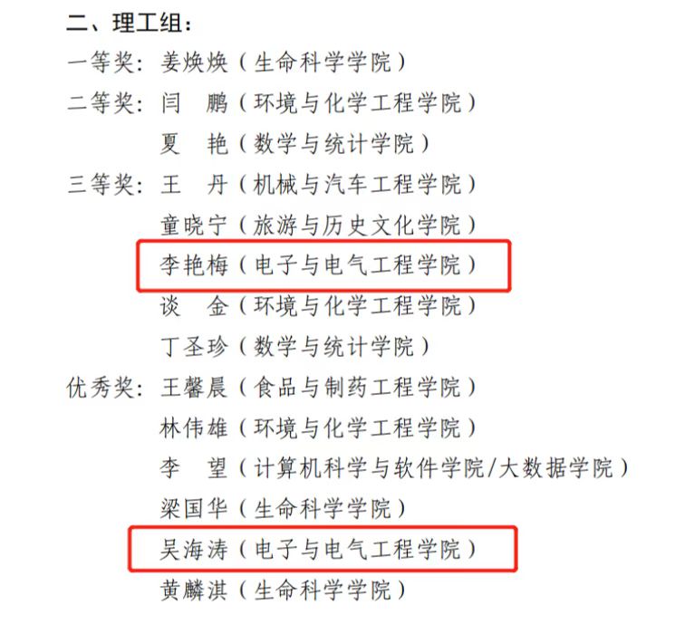 在肇庆学院组织开展的2022年度教师教学大赛活动中,js333金沙教师积极申报、充分准备,经专家组评审及全校公示,js333金沙李艳梅老师荣获2022年度肇庆学院教师教学大赛理工组三等奖,吴海涛老师荣获2022年度肇庆学院教师教学大赛理工组优秀奖,为推动js333金沙教师在教学岗位上积极进取、主动成长发挥了优秀的示范作用。